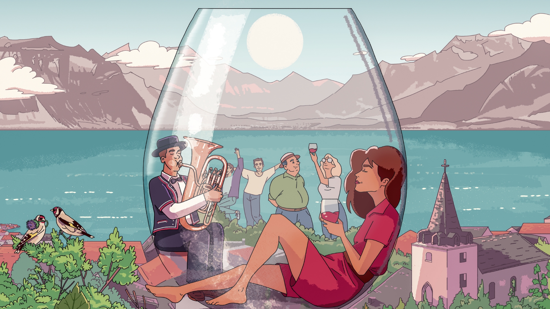 L’affiche de la Fête des vendanges de Chardonne 2025 rassemble épicuriens, musicien et fêtards. Le but de cet événement: rassembler les différents participants autour du patrimoine viticole. | Imapro